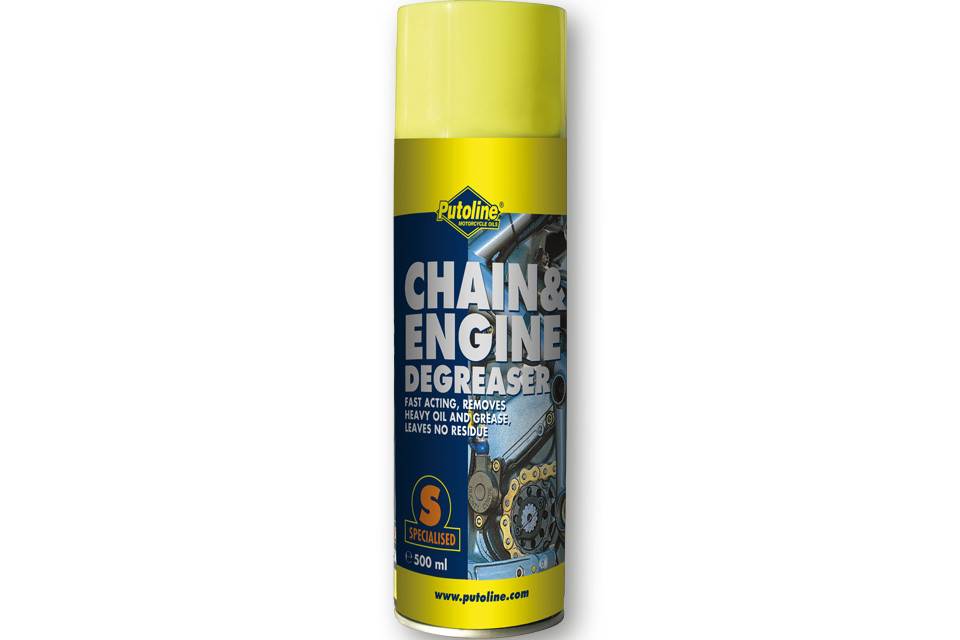 Putoline Chain & Engine Degreaser Spray has been especially developed for motorcycle use. Its unique fast acting formulation will remove heavy oil and grease from all areas including chains, sprockets, engines and frames. Easy & quick to use, suitable for all chrome, painted, rubber and plastic surfaces, water-soluble & leaves no residue.