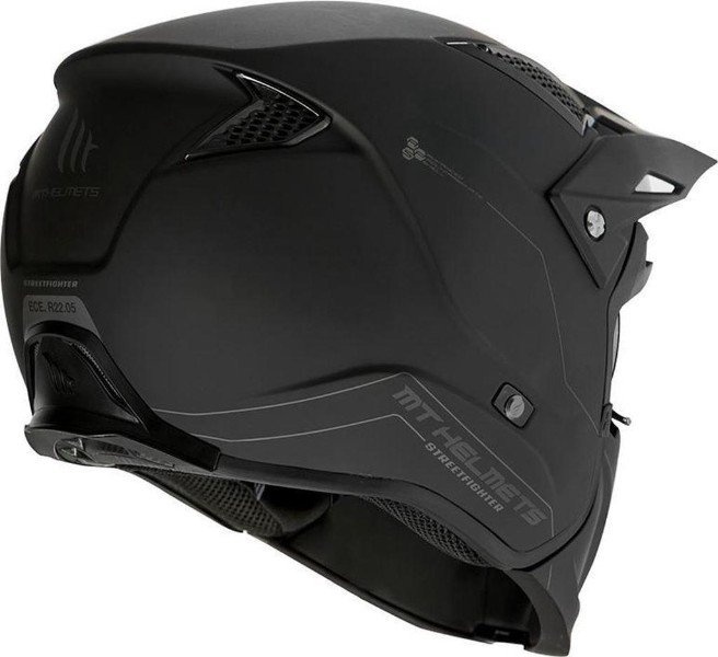 De Streetfighter S SV is geüpdatet om het veiligheidsniveau naar het hoogste niveau te tillen. Hij overtreft de nieuwe EU norm 22.06. Het heeft ook DOT homologatie Bluetooth compatibel (voorbereid voor de integratie van intercom luidsprekersysteem) 2 shells MT-QMRS (Quick Mask Release System) MT-MDTC (Micrometric Double Teeth Closure) Ventilatie covers Ondersteuning voor sportcam HIRP shell Ventilaion